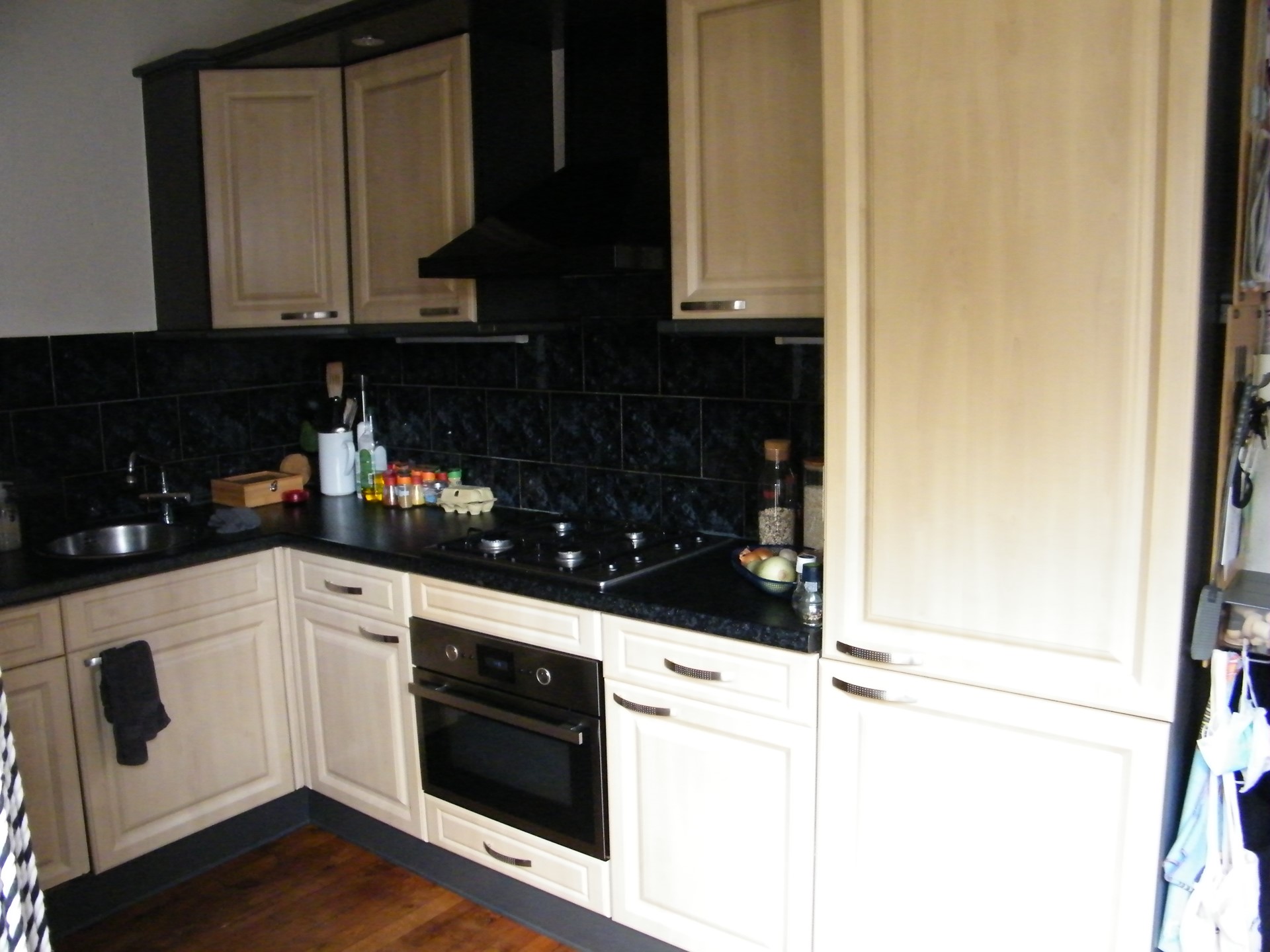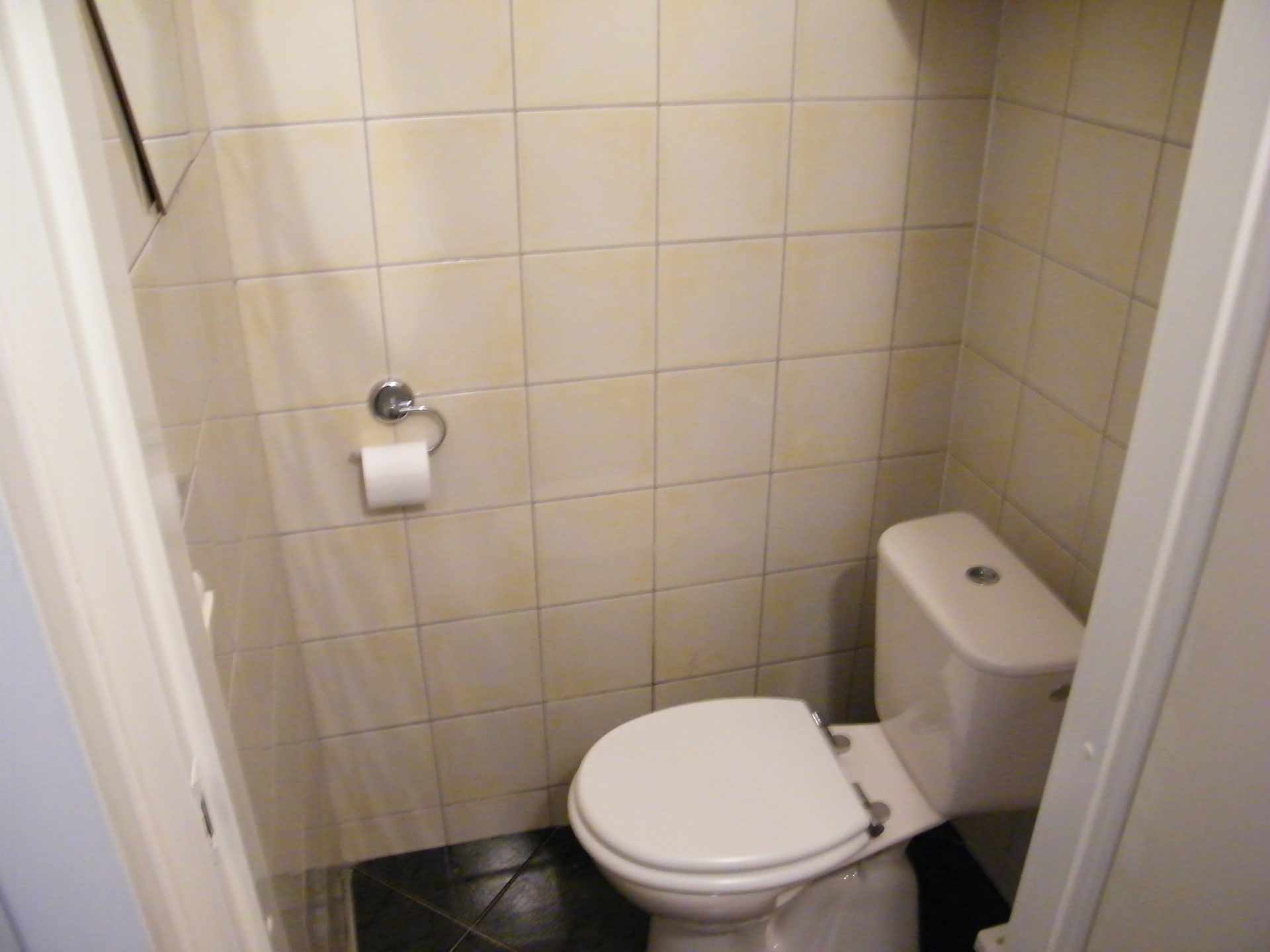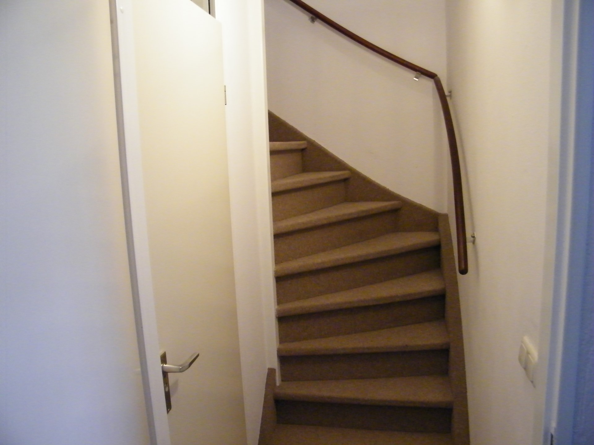 Entree hal met meterkast, woonkamer met deur naar het terras en half open keuken met inbouwapparatuur zoals : kookplaat op gas, combimagnetron en afzuigkap, vaatwasser en koelkast, deur naar de bijkeuken met een buitendeur en de aansluitingen voor witgoedapparatuur, hal met daarin de betegelde toiletruimte met toilet, vaste trap naar de verdieping vanuit deze hal
